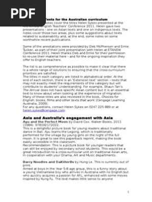 Suggested Texts For Australian Curriculum Helen Sykes